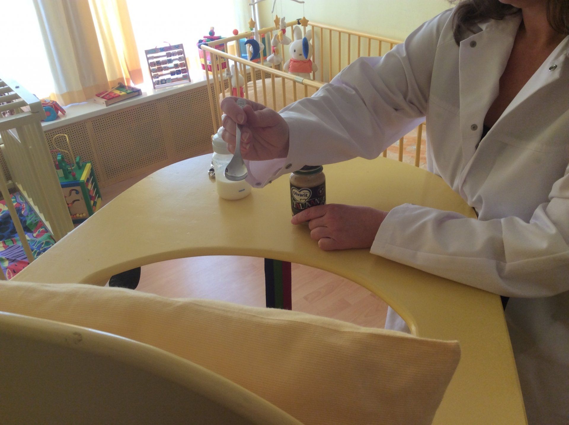 Nanny Petra will put you in the high chair and nourish you with baby food and milky/fruit drinks in baby bottles